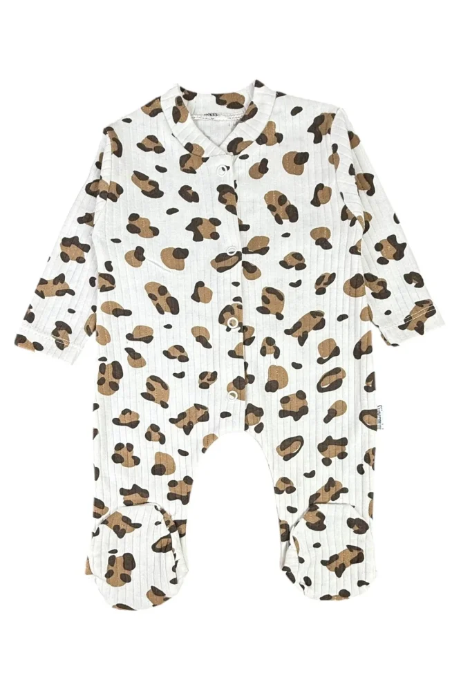 Pohodlný kojenecký overal Leopard je ideální volbou pro miminka. Je vyrobený ze 100% bavlny, která je šetrná k citlivé pokožce miminek. Díky zapínání na baby druky na přední straně se snadno obléká a je perfektní na spaní, hraní i procházky. Overal má dlouhé rukávy a nohavice s ťapek, takže poskytuje volnost pohybu po celý den.